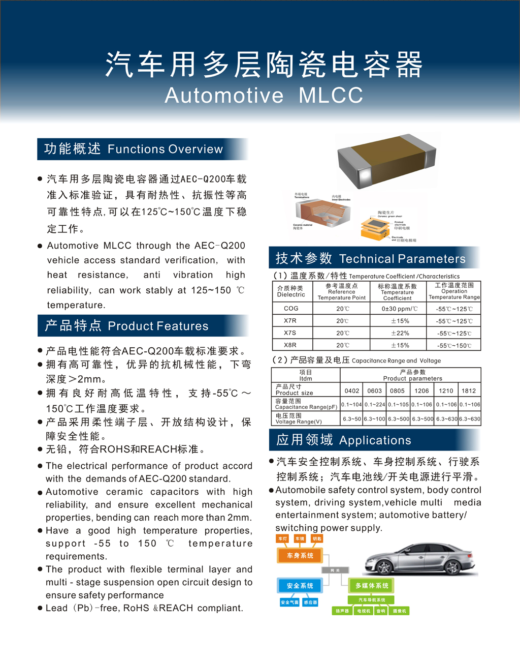 小車用(yong)疊層陶瓷制品電(dian)(dian)(꧙dian)解電(dian)(dian)(dian)袋子途經工作AEC-Q200車載(zai)電(dian)(dian)(dian)子分(fen)級管(guan)理規定考察,遵循(xun)耐高溫(wen)性、抗🌊振(zhen)性等高靠受(shou)得了性上海特色,還可以在125℃~150℃溫(wen)濕度下發生變化重任。